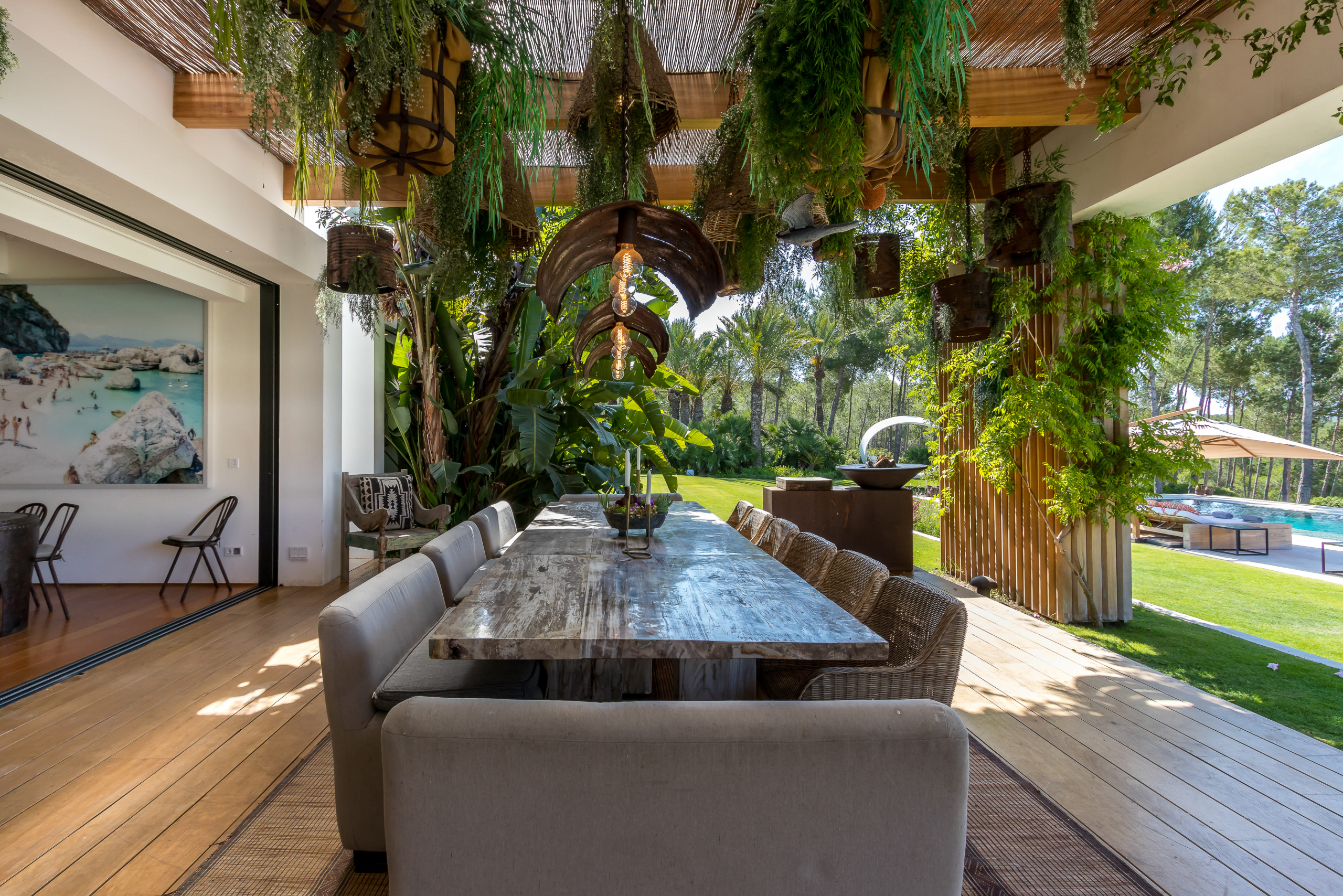 Ca Na Xica es una finca de lujo de siete dormitorios situada entre San José y Cala Jondal, que presenta una arquitectura moderna, materiales naturales y servicios de primera clase. Con una piscina infinita de 25 metros, un hammam privado y espacios de entretenimiento al aire libre, ofrece una privacidad y sofisticación inigualables.