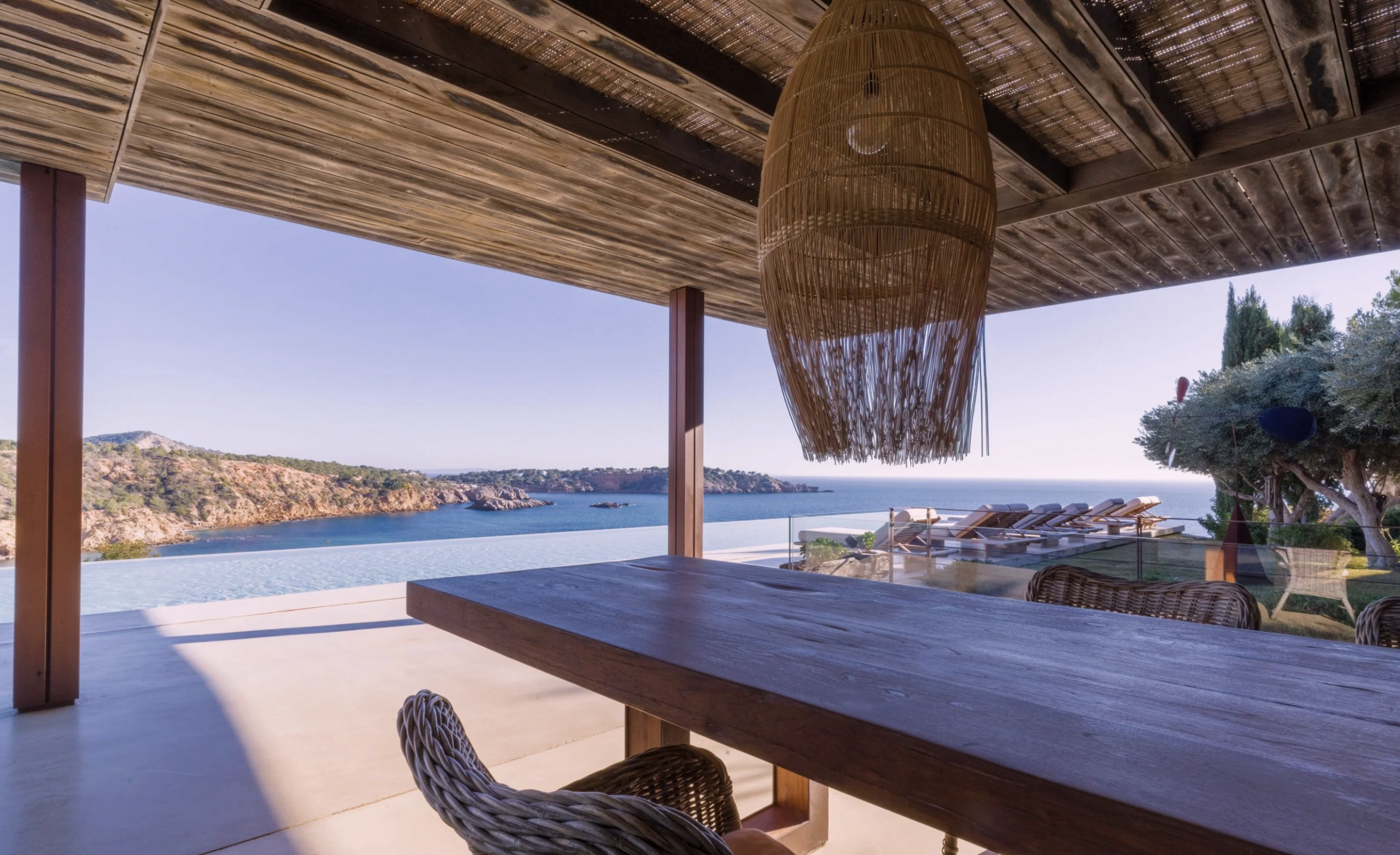 Ubicada dentro de la prestigiosa comunidad cerrada de Vista Alegre, a pocos minutos de Cala Jondal, Villa Sa Calma es una obra maestra de sofisticación discreta. Esta propiedad de primera línea se extiende a lo largo de 1.200 m² en tres niveles y se asienta sobre una parcela de 3.600 m² con acceso costero directo e ininterrumpidas vistas al mar.