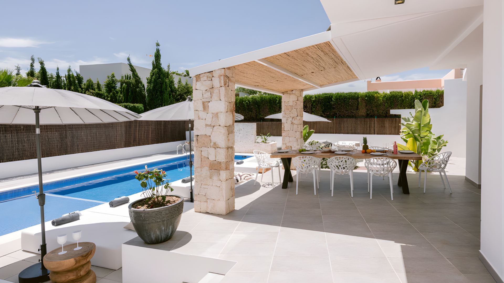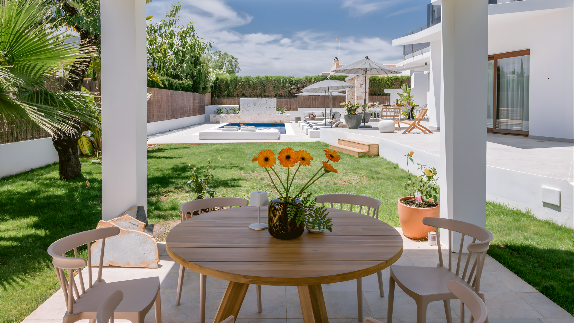 Villa Sa Carroca es un refugio privado en la ladera de una colina que ofrece tranquilidad y confort en una de las zonas residenciales más convenientes de Ibiza. Situada en una parcela de 1.041 m², la villa cuenta con 325 m² de espacio habitable con cuatro dormitorios, cinco baños e interiores luminosos que se extienden a la perfección a terrazas cubiertas, jardines y una piscina privada.